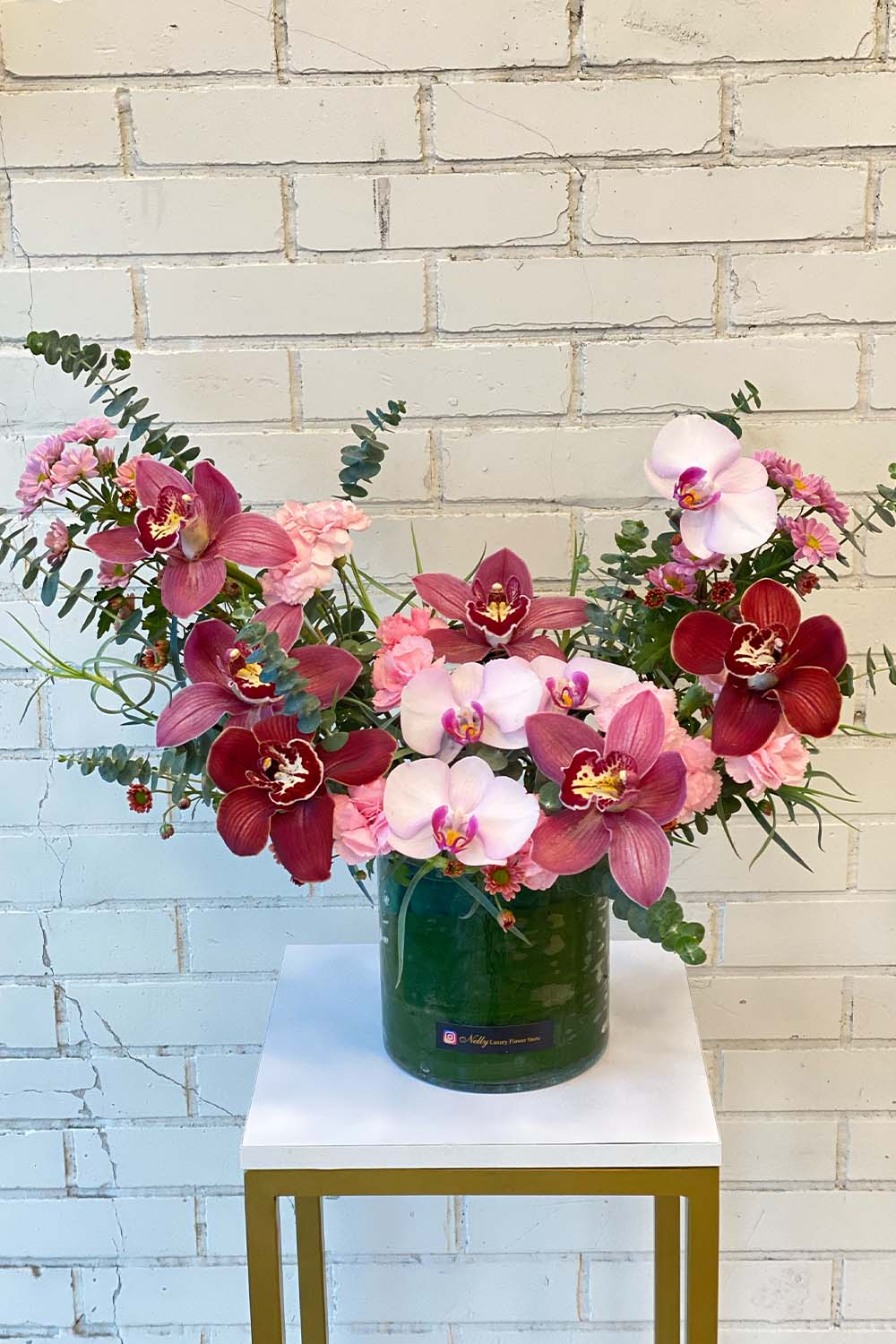 • گلدان شیشه ای دیزاین ۴۰ سانت نلی با ارکیده