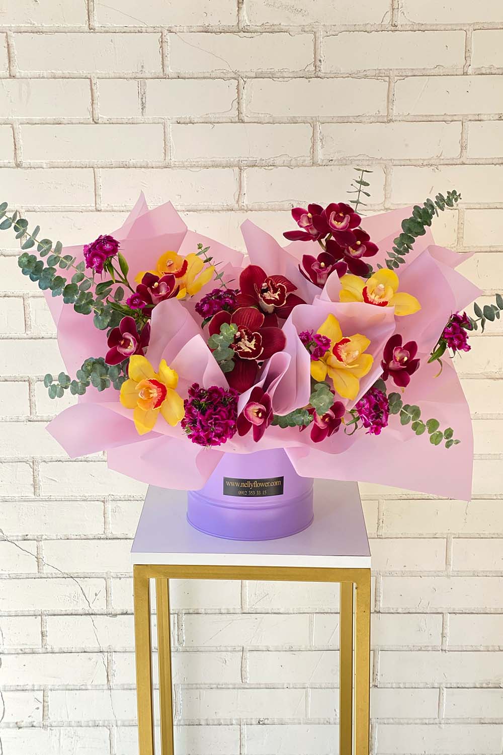• باکس بنفش دیزاین ۴۰ سانت ارکیده های سیمبیدیوم رنگی